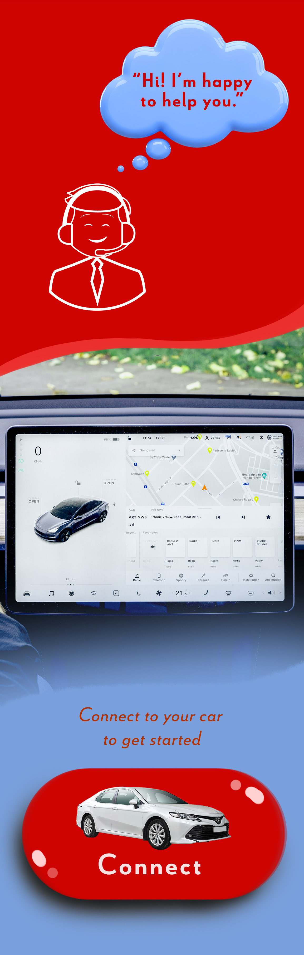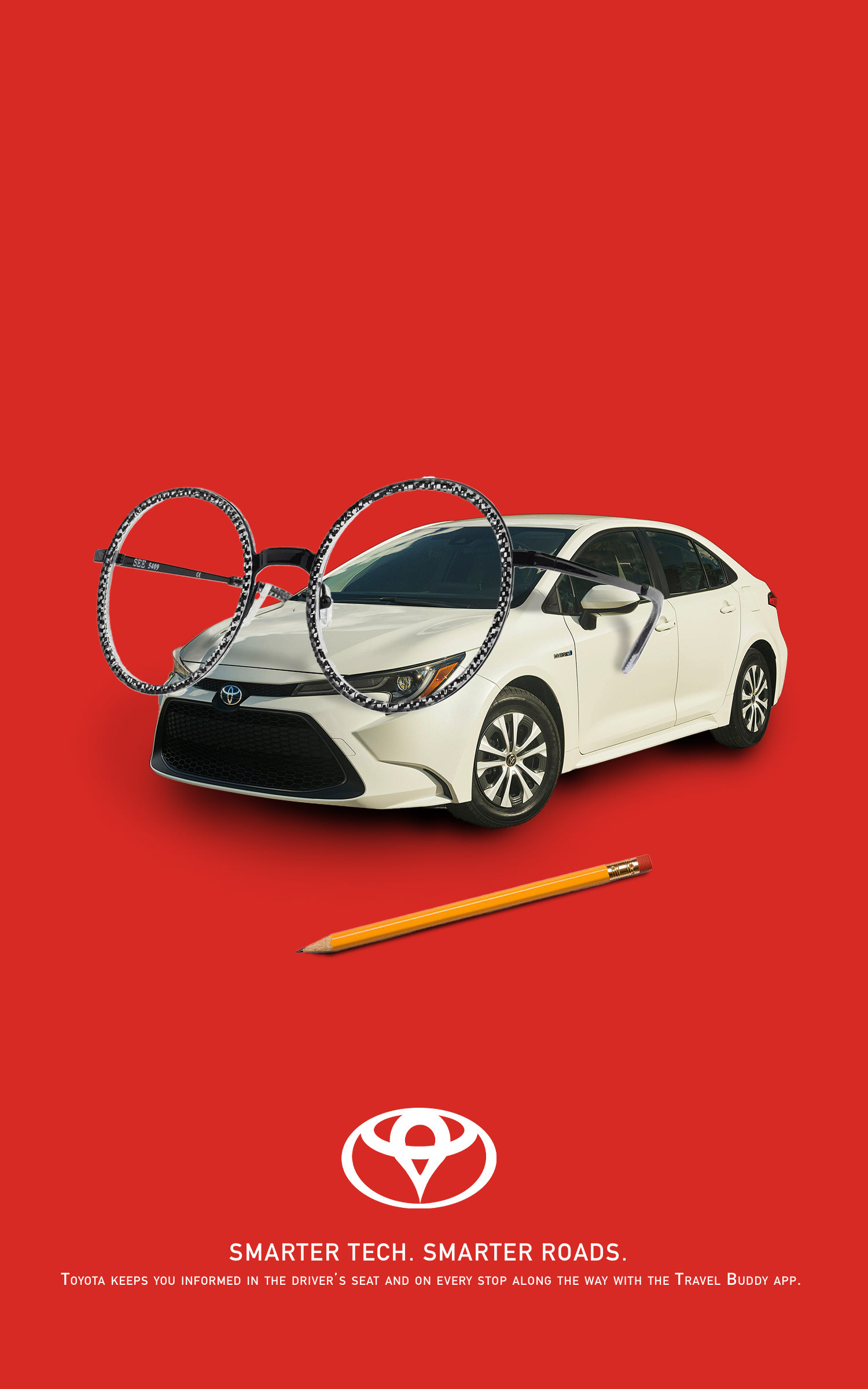 This is an ad campaign for an app I designed for the brand Toyota. The ads were inspired by the idea of Travel Buddy being a smart app for your car, and I attempted to showcase this by using unexpected elements to represent that. I tried to make a clean professional app based on the original brand and how it feels. The app is able to connect to your car and help you pick helpful stops along the route you choose.